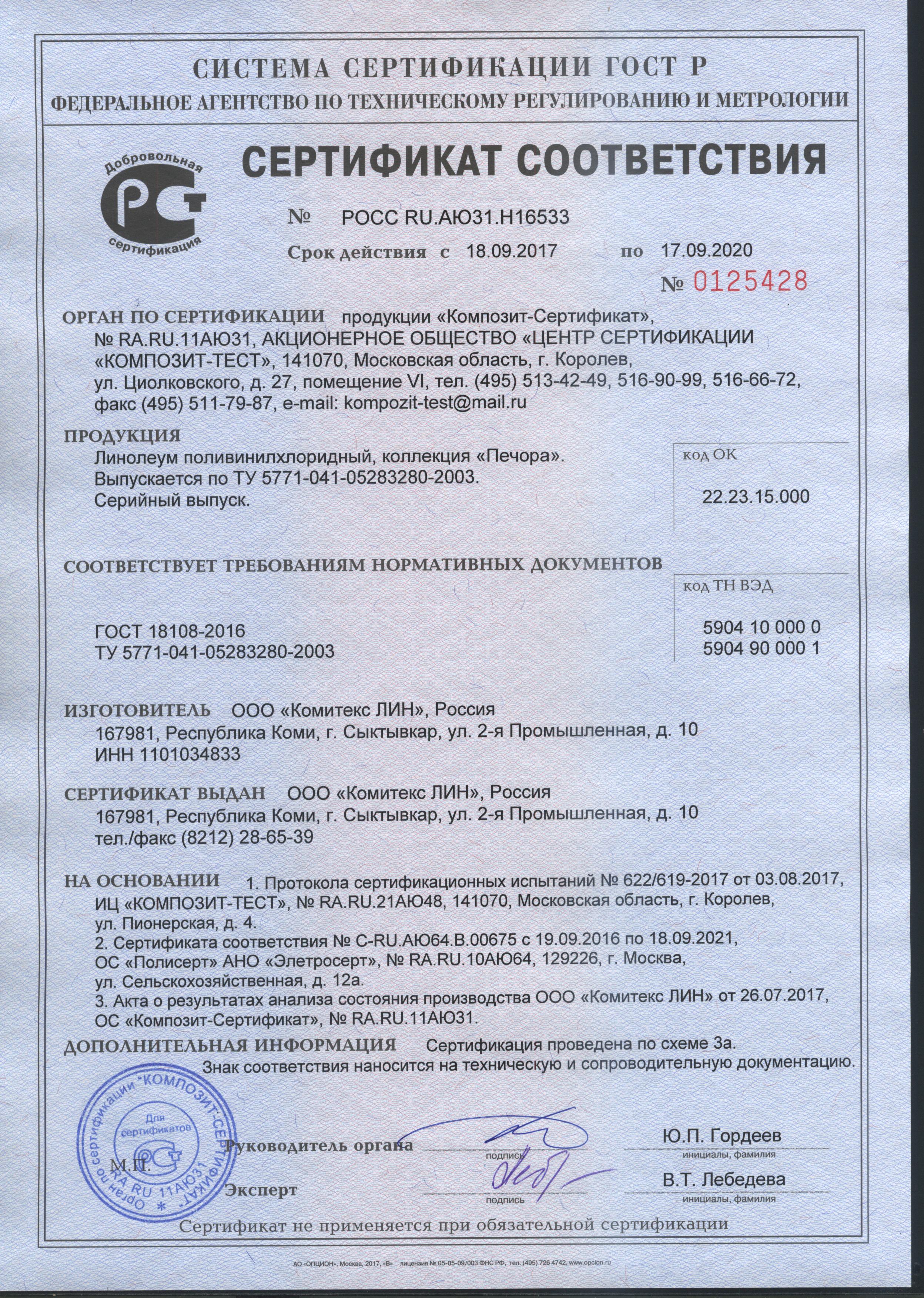 Цветоустойчивый - Линолеум Strong Wear tehnology является цветоустойчивым, что подтверждено испытаниями в соответствии с ГОСТ 11583 (п 5) после облучения 504 часа цветовое различие между облученными и исходными образцами Е составляет в среднем 2 условные единицы, что в два раза лучше допустимой нормы (не более 4 порогов цветоразличения).
